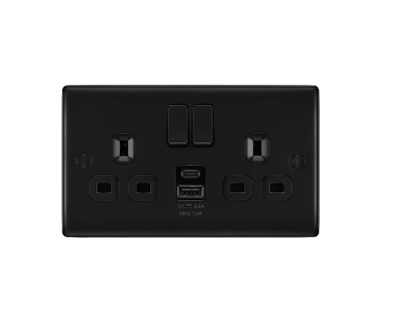 BG NEXUS DOUBLE SOCKET USB TYPE A & C MATT BLACK 12W