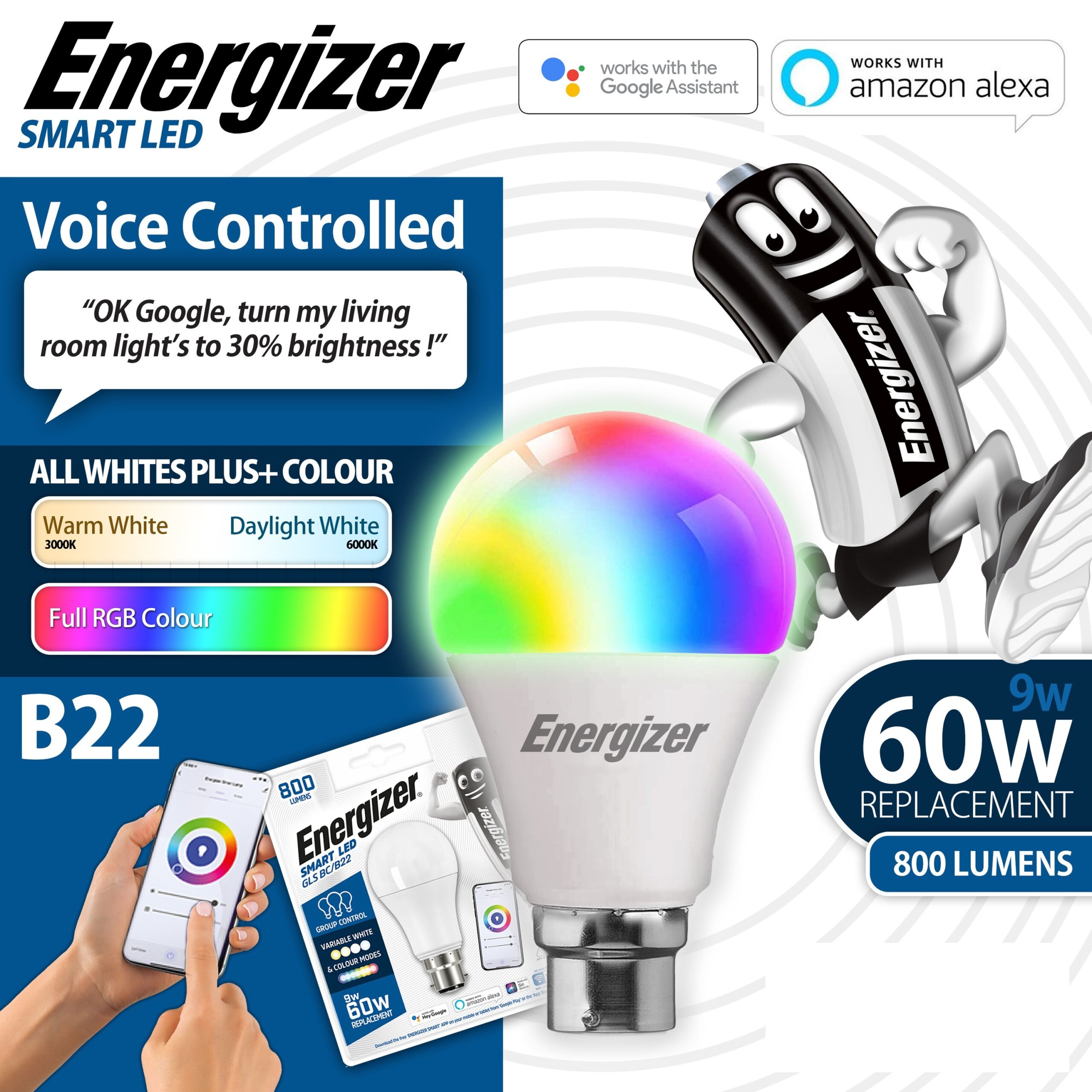 ENERGIZER SMART LED GLS B22 BC RGB + CCT 9.2W