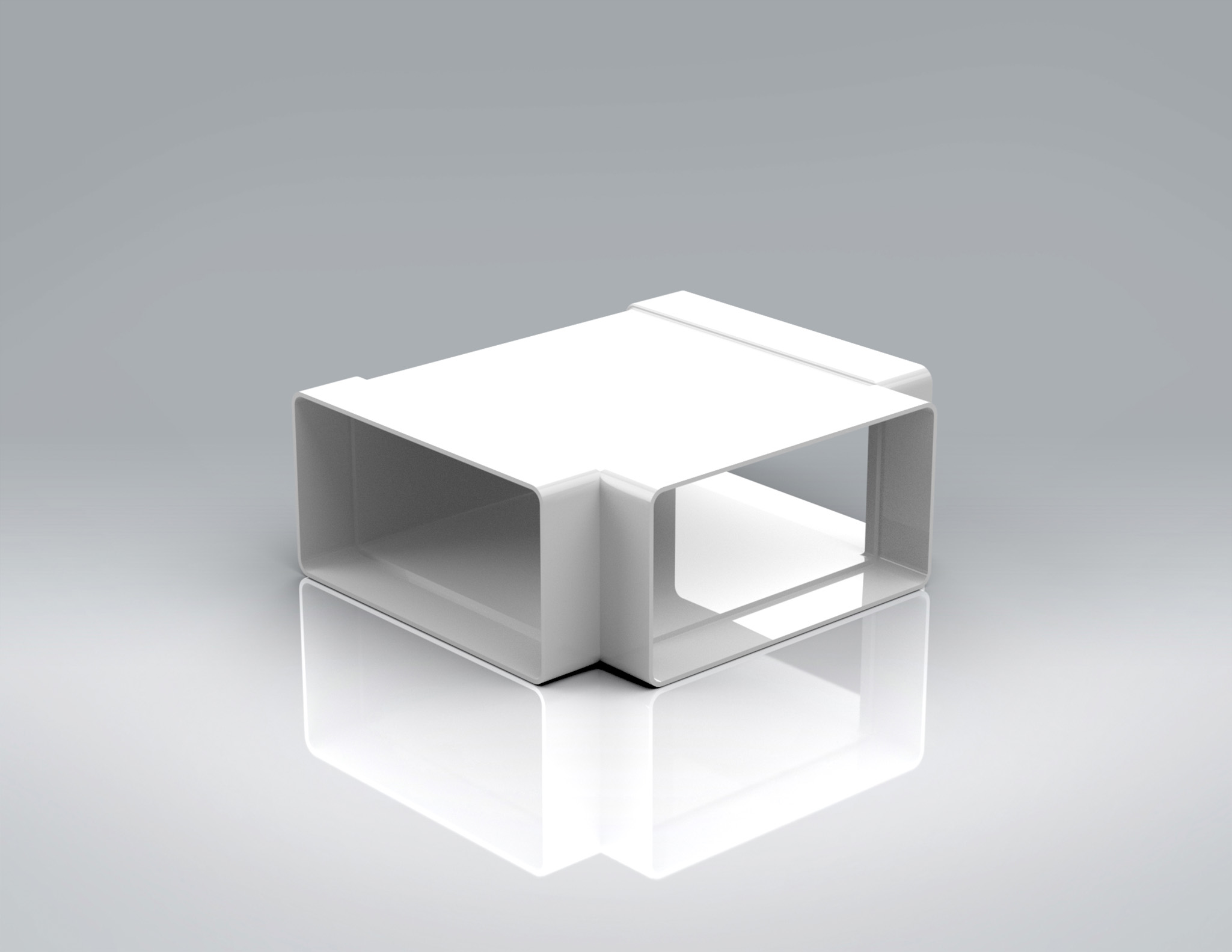 This is our 110x45mm Equal Tee Piece. The system 100 rectangular 110x54mm ducting range offers the ideal ventilation solution for traditional fan installations into extensions and refurbishment properties.
