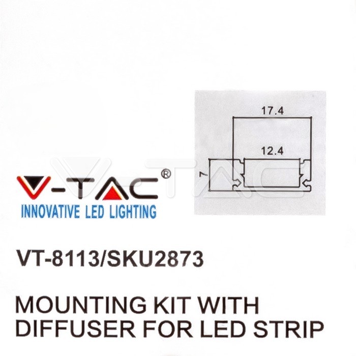 LED PROFILE SURFACE SLIM 2M+END CAP+DIFFUSER BLACK, VT-8113 / 2873